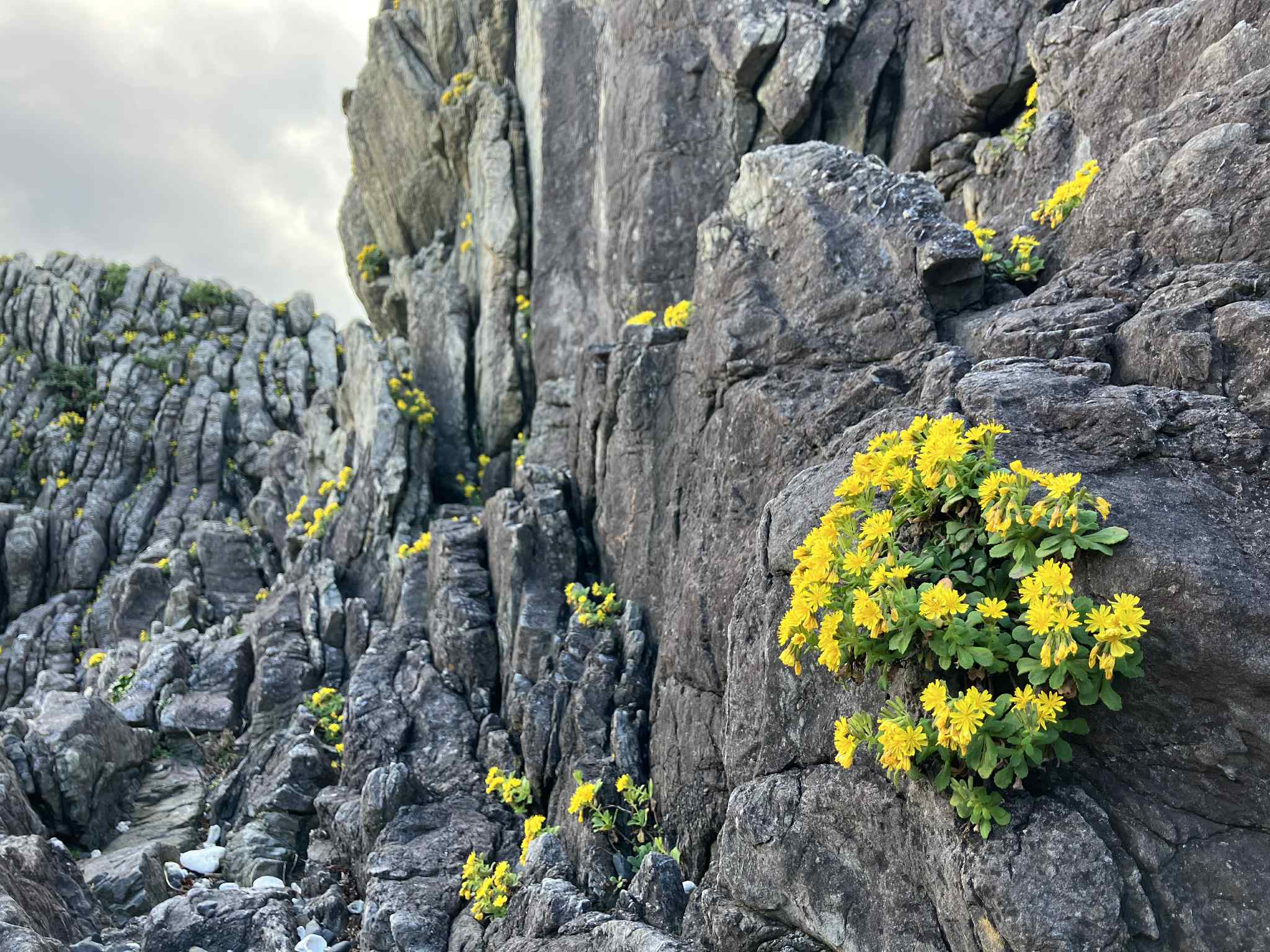 まずは、岩肌からたくさんかわいらしく生え茂っているアゼトウナ。