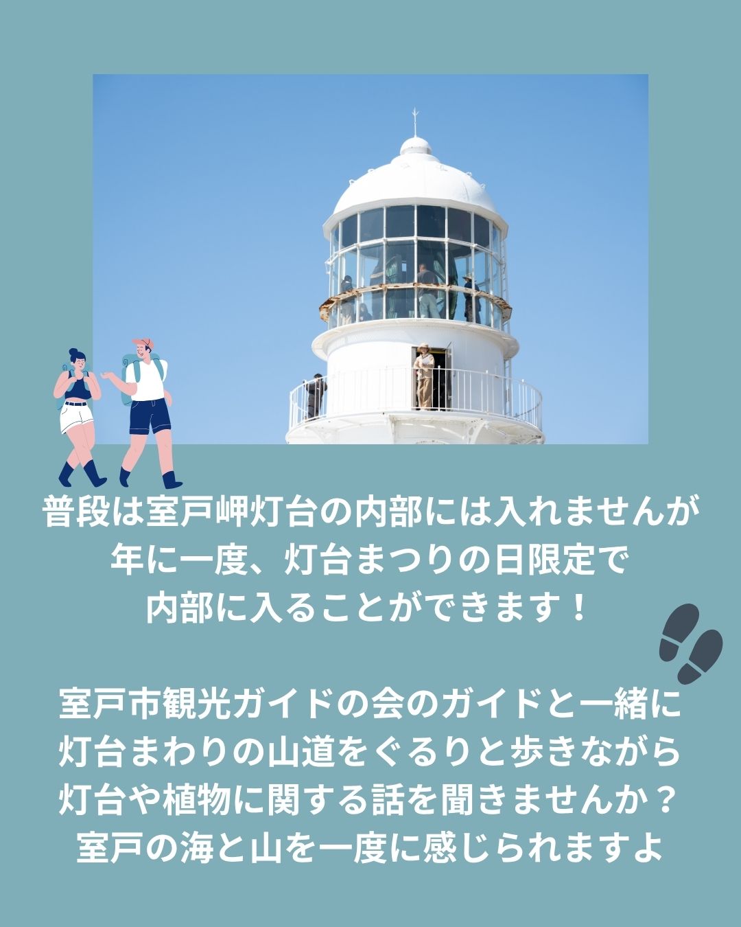 室戸市観光ガイドの会のガイドと一緒に灯台まわりの山道をぐるりと歩きながら、灯台や植物に関する話を聞きませんか?
